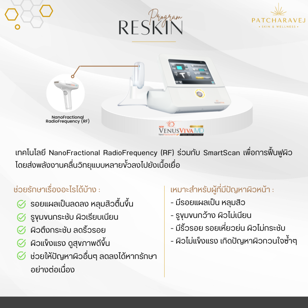 เครื่อง Venus Viva™ MD เป็น Ablative NanoFractional RF with SmartScanTM Technology เป็นเทคโนโลยีที่ได้รับรองด้านประสิทธิภาพและความปลอดภัยจากองค์การอาหารและยาแห่งสหรัฐอเมริกา (US FDA) และประเทศไทย (Thai FDA)