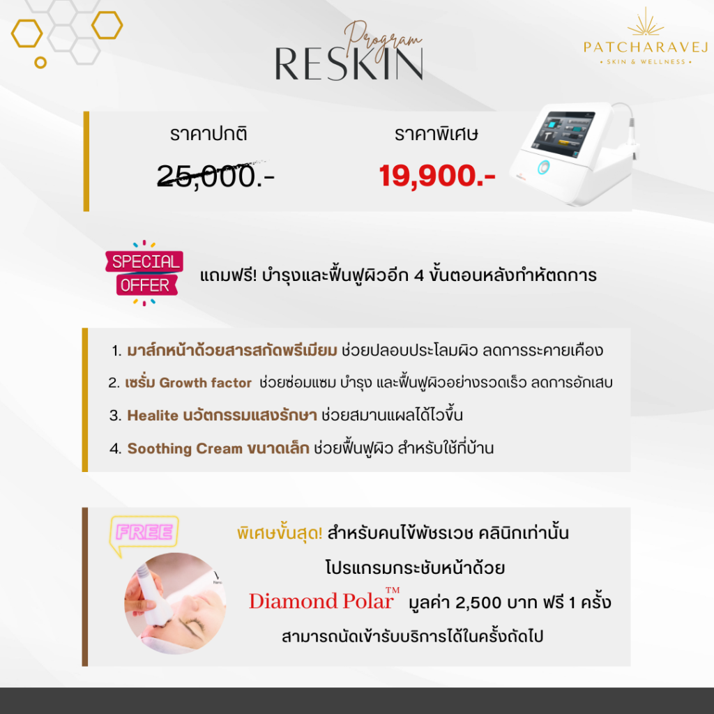 แถมฟรี !!! ยกกระชับหน้าด้วย Diamond Polar TM มูลค่า 2,500 บาท 1 ครั้ง สามารถเข้ารับบริการได้ในครั้งถัดไป
